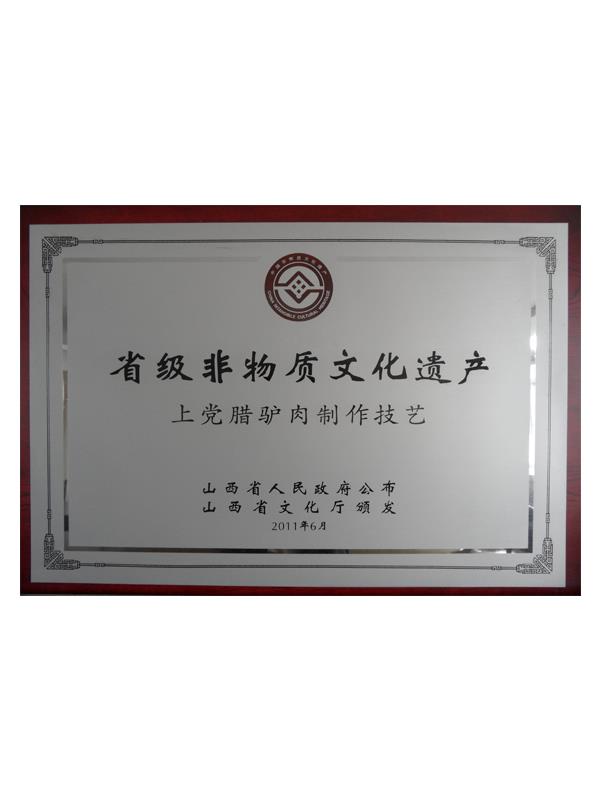 《本草綱目》第五十卷記載有:“驢肉味甘、無毒、解心煩、止風(fēng)狂、能安心氣、補(bǔ)血益氣、治遠(yuǎn)年勞損”的作用,尤其對失眠、健忘、眩暈、營養(yǎng)不良、貧血癥有獨特療效。上黨臘驢肉是山西長治市的漢族傳統(tǒng)名吃,其肉質(zhì)肥而不膩、瘦而不柴、香味四溢、回味無窮。早在明代,臘驢肉就已馳名于上黨和晉南地區(qū),產(chǎn)品遠(yuǎn)銷北京、天津、南京等南北名城。臘驢肉與當(dāng)?shù)氐臎龇?、酥火燒被稱為潞安府(長治古稱潞安府)三寶。